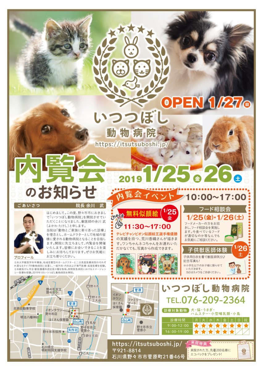 2019年1月27日(日)、いつつぼし動物病院、新規開院いたします。